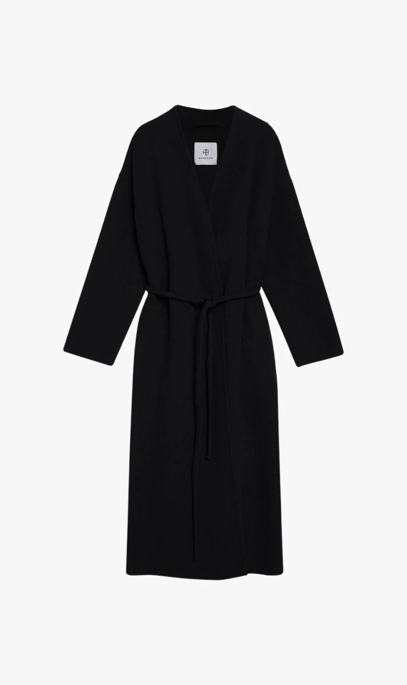 The Anine Bing Hunter Coats long, streamlined silhouette is finished with a turn-back hem for easy tailoring without compromising its intended fit and fabric quality. It’s a collarless, full-length style that is perfectly clean and simple, finished with flat on-seam pockets and an understated self-tie belt at the waist. The Hunter Coat is crafted in the same luxurious wool-cashmere blend as our best-selling Dylan Coat from the Classics Collection, but in a staple black.