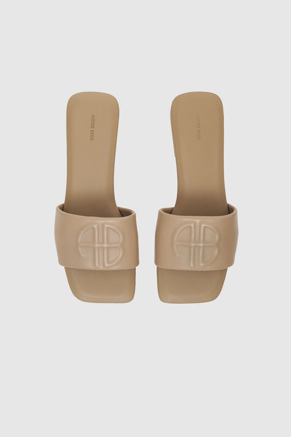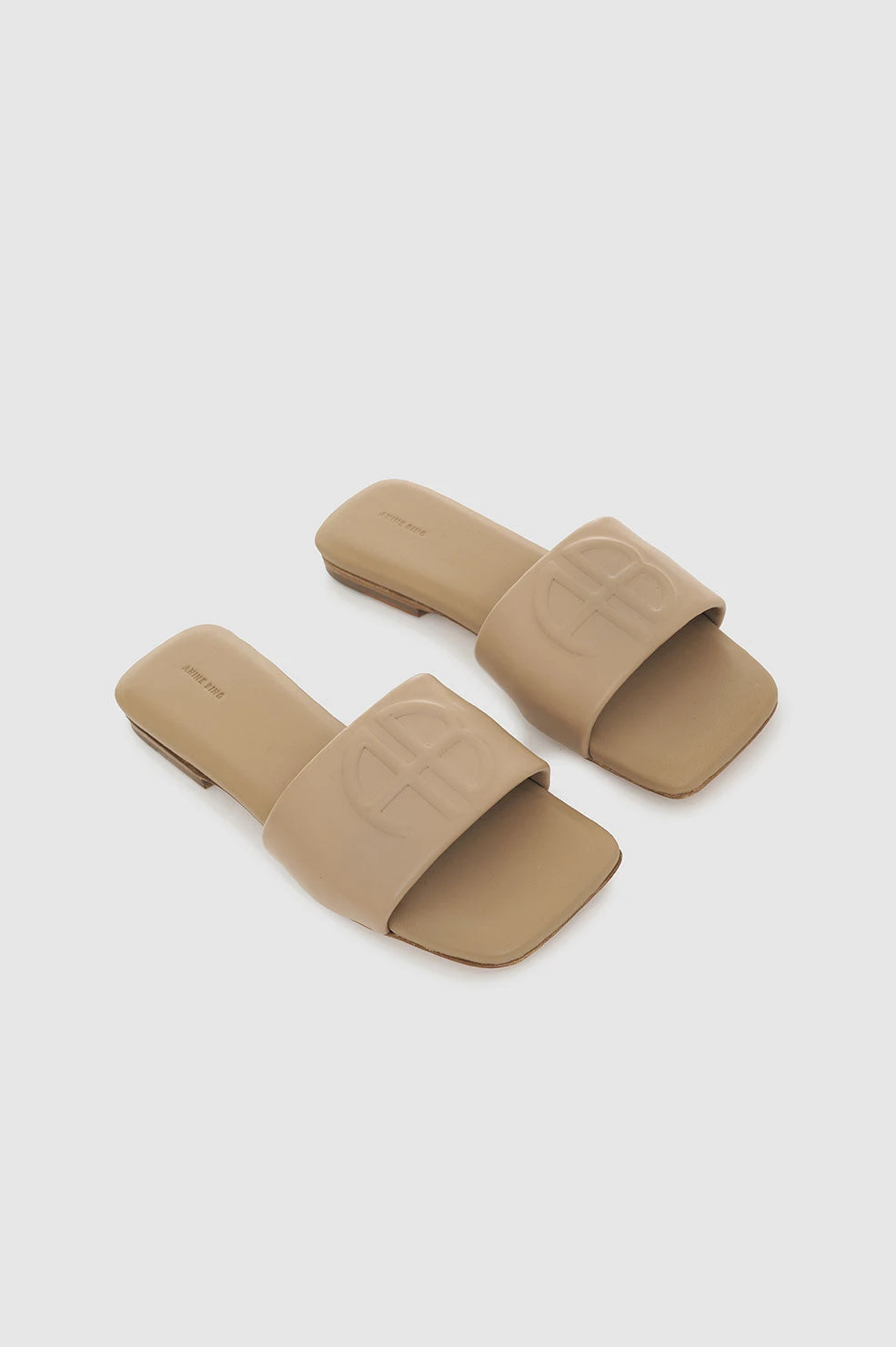 The Anine Bing Ria Slides in Butterscotch Monogram will effortlessly elevate your outfit. Carefully crafted from smooth 100% lamb leather with a cushioned insole to keep you comfortable all day long. This style’s seamless construction features a puffy embossed Anine Bing monogram.