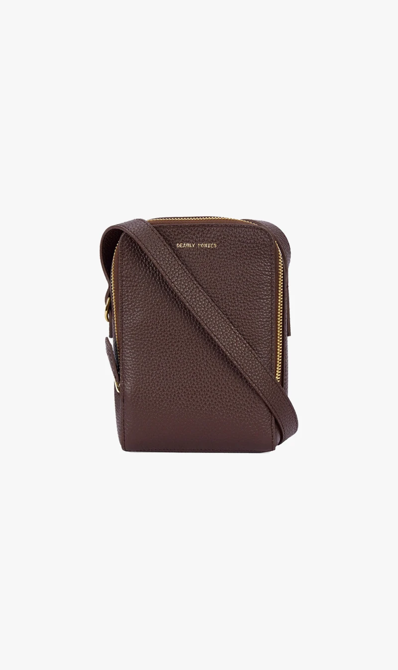 The Deadly Ponies Orion Micro in Burnt Toast is making his return this season, a coveted unisex essential from our Voyage collection. Petite in size but equally as practical and easy on the eye as his big brother. Orion Micro features an internal card slot and slip pocket, ensuring your most-needed essentials are always close to hand. A zip closure offers ease of access, while an adjustable strap makes for comfortable wearing on the go. As ever, our iconic Bovine leather offers a sumptuous feel, while signature brass hardware ensures this travel bag is a continued classic. Available in seasonal colourways.