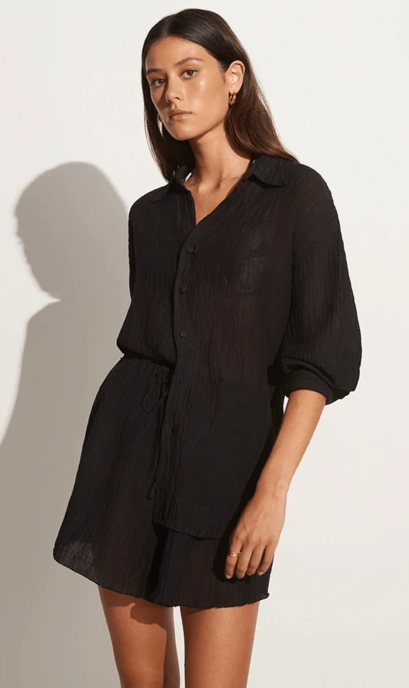 The Faithfull The Brand Solar Shirt in Black elevates your everyday summer wardrobe. Cut and crafted from crinkle textured linen and hand-dyed in a timeless black hue. This oversized long sleeve shirt effortlessly pairs with your favourite denim bottoms. Roll up the sleeves or adjust the button closure for versatile styling options.