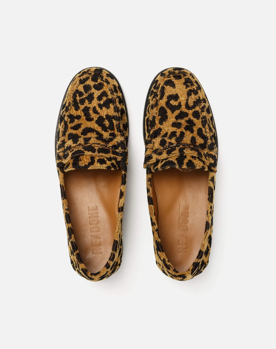The RE/DONE 90s loafer is a take on the classic penny loafer iconic the decade. For this version, RE/DONE explored with unexpected materials like printed jacquard to give more dimension and fun to this classic style.