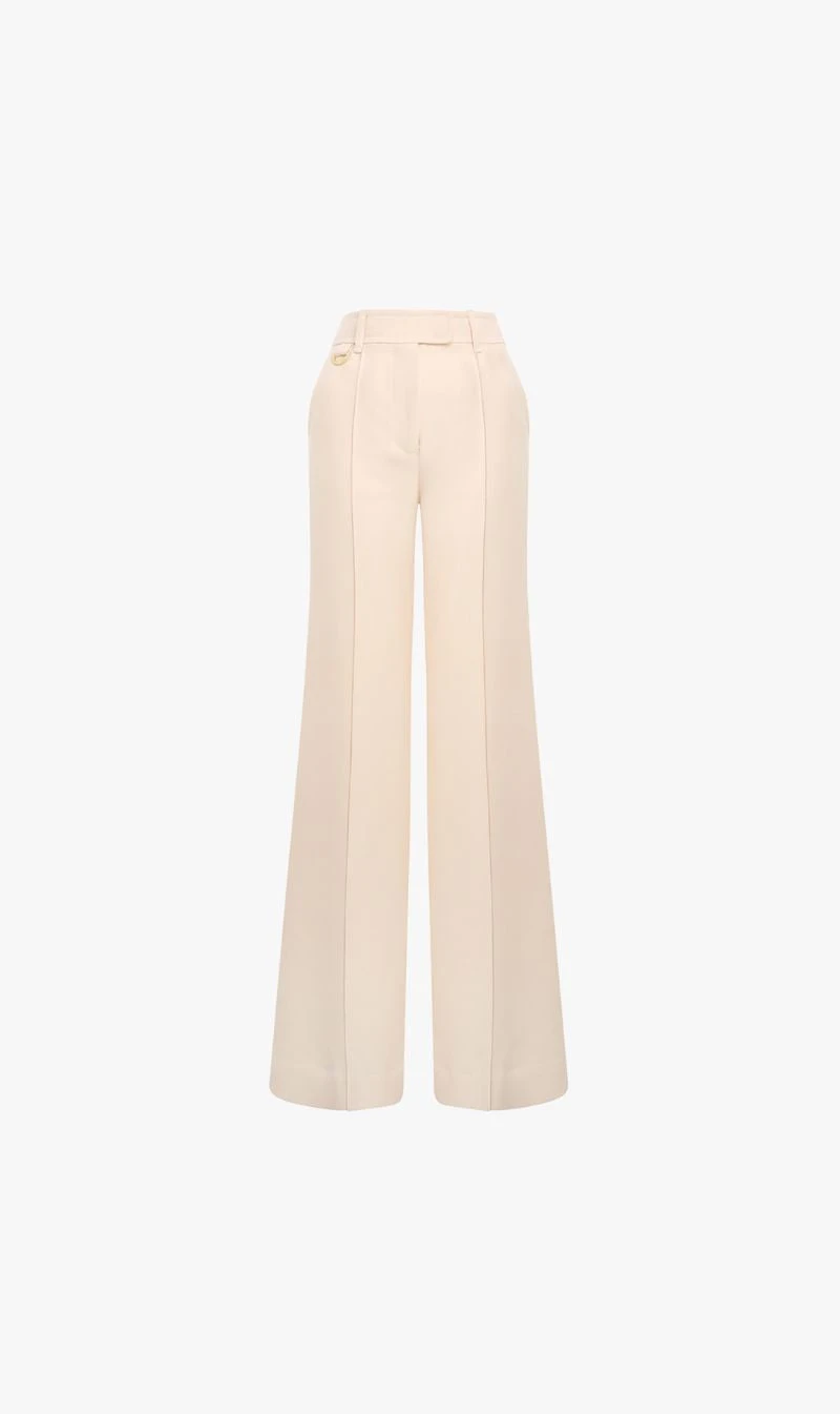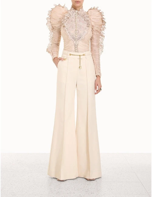 Zimmermanns’ Kaleidoscope Wide Leg Pant in Macadamia feature a wide leg and a removable gold star and moon chain belt.